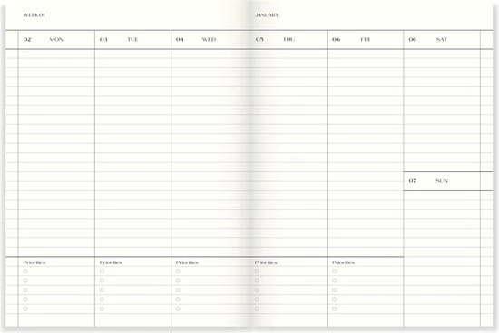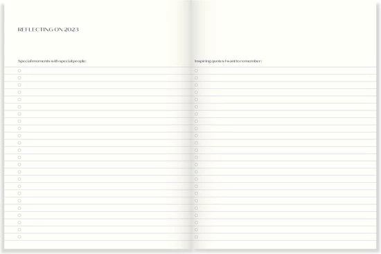De nieuwe agenda van &INK voor 2023 is een overzichtelijke jaaragenda. Elk detail is met veel aandacht ontworpen en dat resulteerde in deze verfijnde maar ook erg praktische planner.De agenda heeft handige weekoverzichten, maandoverzichten, veel ruimte voor notities en een leeslintje .