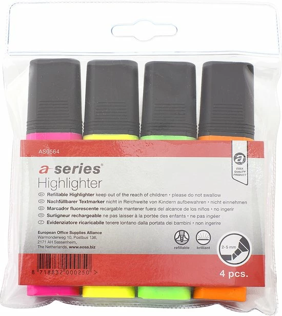 A-Series markeerstiften voor het markeren en benadrukken van belangrijke tekst passages of notities op papier, fax en kopie.