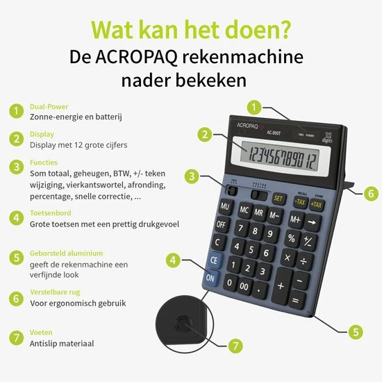 De meeste vaak voorkomende wiskundige berekeningen kunnen hiermee makkelijk en snel worden uitgevoerd.