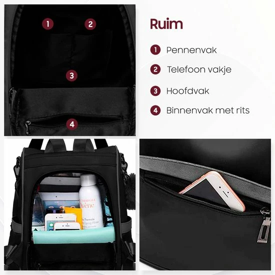 โ Veelzijdig – gebruik als rugzak, handtas of schoudertas