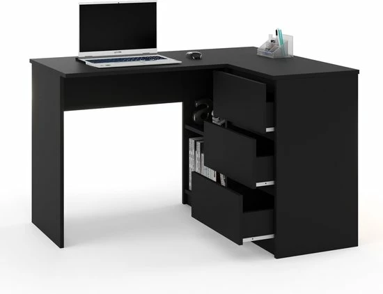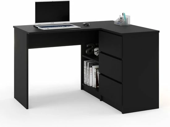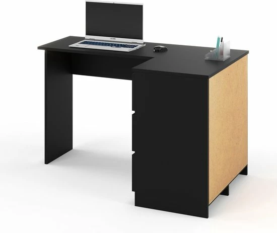 Dit stijlvolle en functionele hoekbureau uit de serie Malmo, is een geweldige toevoeging aan ieder huis of kantoor. Het bureau kan alleen als rechtste hoekopstelling worden gemonteerd volgens de bijgeleverde montagetekening. Dit multifunctioneel eiken bureau kan zowel in een hoek als tegen een wand worden geplaatst en heeft veel opbergruimte. Ideaal te gebruiken als hoekbureau of computer meubel in uw woonkamer, studeerkamer of slaapkamer. Dit bureau heeft 3 lades en 2 open opbergvakken. Dit Malmo hoekbureau is gemaakt van hoogwaardig spaanplaat, dit maakt het bureau stevig.