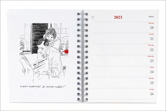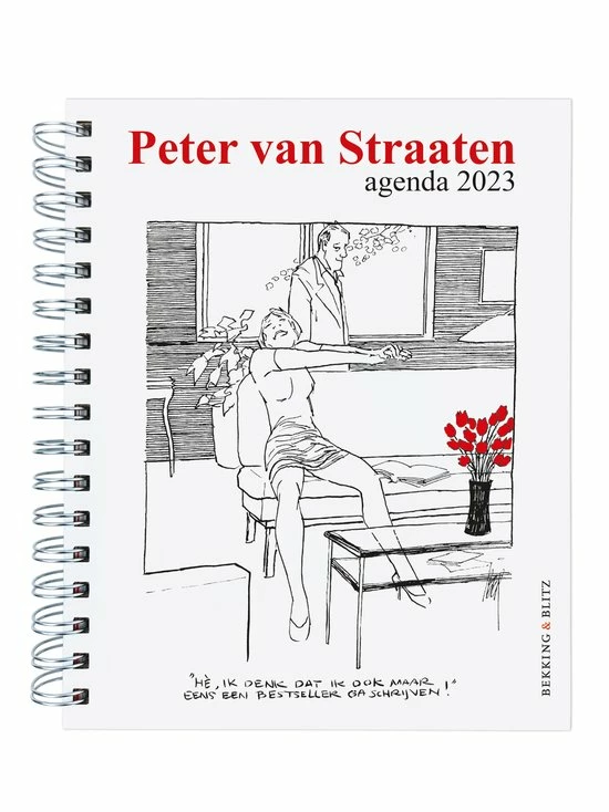 Peter van Straaten tekende ruim vijftig jaar lang en liet een groot oeuvre achter dat nog iedere dag tot de verbeelding spreekt. Zijn werk is veelgeprezen en tijdloos. Bovendien weet hij meerdere generaties aan te spreken. Een goede reden voor Bekking & Blitz om deze agenda te ontwerpen waarin de cartoons van Peter van Straaten centraal staan. De agenda is spiraalgebonden en rijk geillustreerd met iedere week een andere afbeelding. Weekoverzicht op 1 pagina met ruimte voor notities, voorzien van weeknummers en een beknopt jaaroverzicht van 2023 & 2024. Formaat: 18 x 22,5 cm