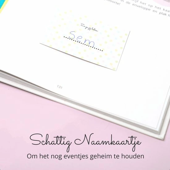 Het bijgevoegde naamkaartje met enveloppe gebruik je in week 32 voor het opschrijven van de definitief gekozen babynaam. Schrijf de naam die jij en je partner hebben gekozen op het Beppie naamkaartje en stop het in de enveloppe. De enveloppe plak je op de plek in week 32. Dan blijft het nog even het geheimpje van jou en je partner. Interessant om in de toekomst terug te zien! Uiteraard kun je dit ook later pas doen; voel je vooral niet verplicht om voor week 32 een definitieve naam gekozen te hebben.