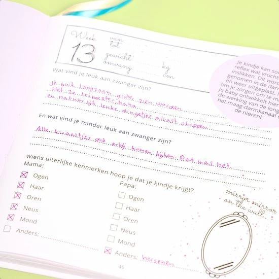 We wensen je veel plezier, geluk, en moois toe met je zwangerschap en het invullen van je zwangerschapsdagboek!