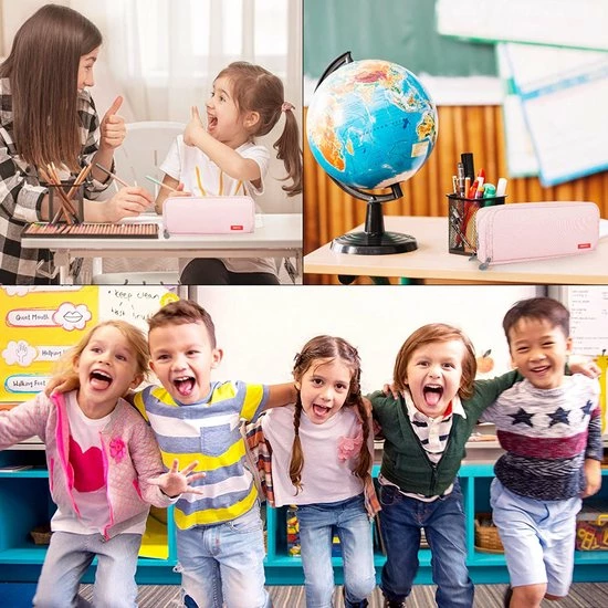 Praktisch ontwerp – Het praktische ontwerp met drie vakken voor deze pennenzak om uw schrijfgerei te scheiden en te organiseren. Het hoofdvak biedt voldoende ruimte en de twee andere vakken zijn voorzien van pennenlussen, elastische netvakken en binnenvakken voor kleine voorwerpen zoals gummen, paperclips, scharen, enz.