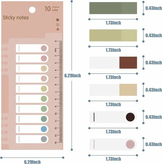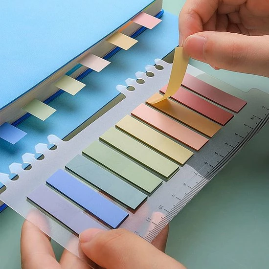 BOTC Film Index tab Memoblokken – 44 x 11 mm – 30 x Morandi Kleur / transparant op flexibele liniaal met millimeter aanduiding – 600 stuks