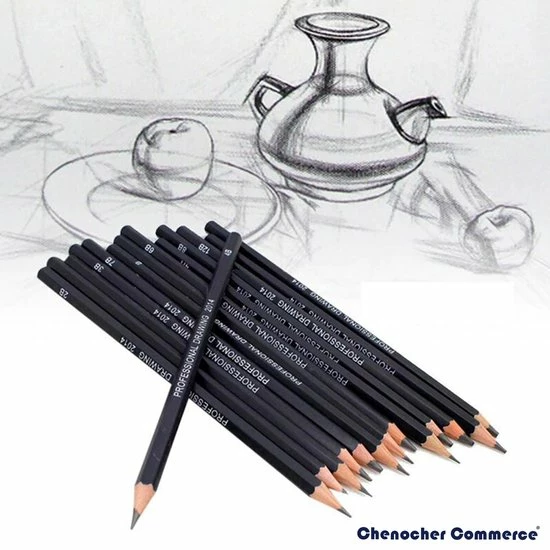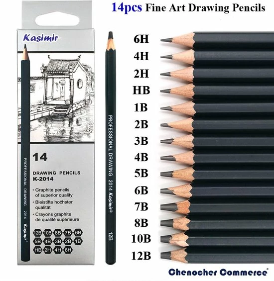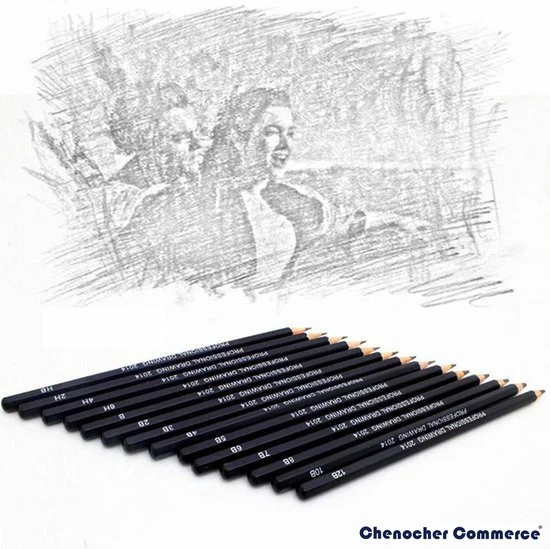 Met deze 14 professionele grafiet potloden set kan je goed uit de voeten als je kunst grafisch en/of technisch wilt teken. 8B is bijvoorbeeld een erg zachte potlood, als je het lichtjes op papier zet, het zal snel een donkere lijn achterlaten. Daar in tegen is 6H een hardere potlood en daarmee kan je lichte lijnen zetten. Je zal harder moeten drukken voordat je er een donkere lijn mee kan zetten.