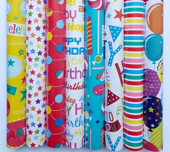 Assortiment van vijf rollen cadeaupapier voor kinderen en volwassenen, Party.