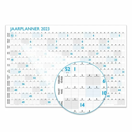 In één oogopslag het hele jaar in beeld. De jaarplanner is een wandkalender op posterformaat.