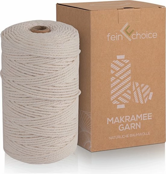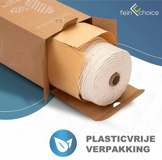 – MacramΓ© garen van natuurlijk katoen zijn sterk en reukloos, ongeverfd, ongebleekt, zonder chemicaliΓ«n, zacht en comfortabel, bestaande uit 4 draden, die sterk en duurzaam zijn. De verpakking is 100% plastic vrij.