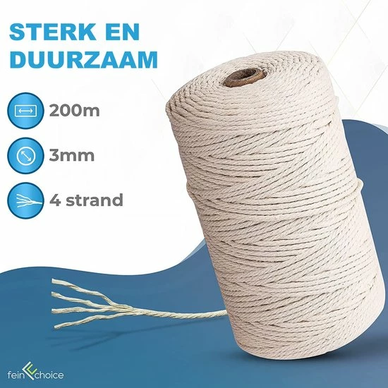 – De macramΓ© garen hebben een lengte en diameter van 200m x 3mm en zijn geschikt voor dagelijks gebruik.