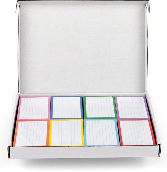 500 stuks A7 Flashcards op extra stevig 300 grams karton. Deze kaartjes hebben een afmeting van 7.5 x 10.5 cm. Onze Flashcards, ook wel Flitskaarten genoemd, zijn dubbelzijdig gelinieerd en worden geleverd in 8 heldere kleuren.