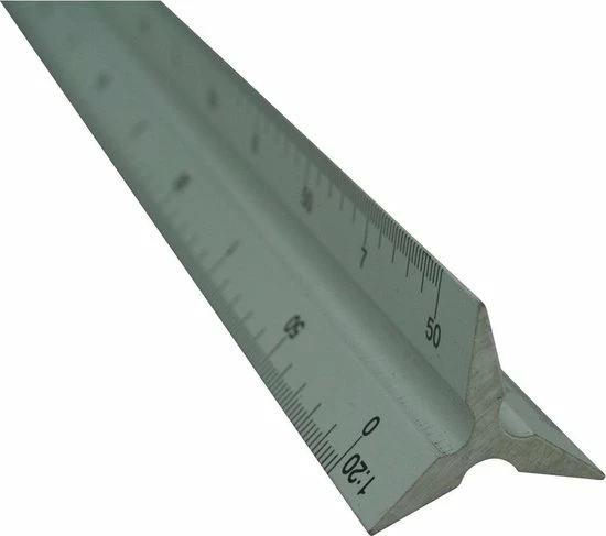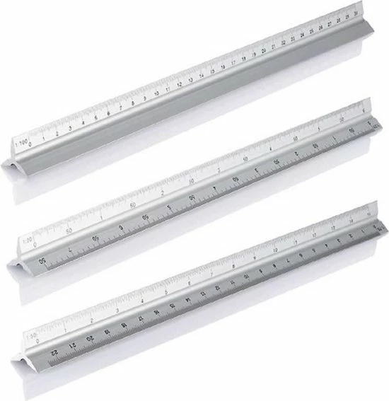 Gietaluminium, driehoekige schaalliniaal voor het veiliger snijden en krassen van materialen. Duidelijke metrische schaalverdeling. 6 schaalverdelingen voor het maken van precisietekeningen. Holle basis minimaliseert vegen tijdens tekenen.