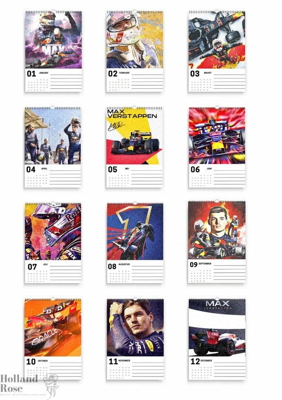 Deze mooie verjaardagskalender van Max Verstappen is gebonden in een zilveren ringband. Hiermee kun je de kalender gemakkelijk ophangen en vergeet je nooit meer een verjaardag van al je vrienden en familie! De wandkalender is niet jaargebonden en kan dus jarenlang mee. Ook geschikt voor kinderen.