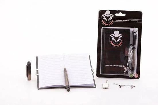 Geheim dagboek met slot voor jongens. Schrijf al je geheimen met deze onzichtbare inkt pen. Aan de achterkant van de pen zit een geheim lampje waarmee deze inkt zichtbaar wordt.