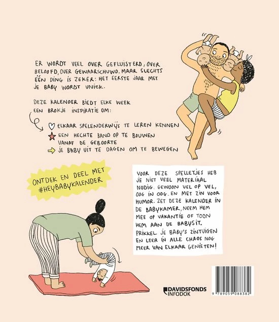 Deze kalender biedt elke week een brokje inspiratie om elkaar spelenderwijs te leren kennen, een hechte band op te bouwen vanaf de geboorte, je baby uit te dagen om te bewegen.