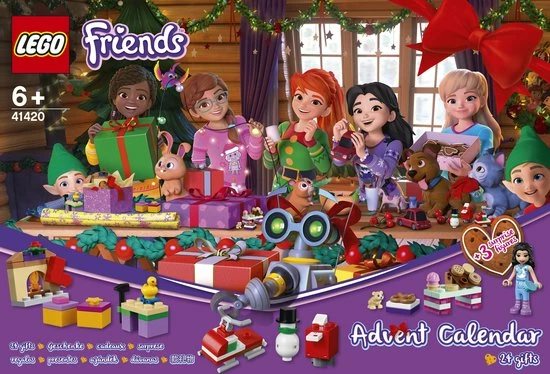 - Aftellen tot Kerstmis wordt nog leuker met de LEGO® Friends adventkalender (41420). Achter elk deurtje zit een nieuw cadeautje dat kinderen zelf kunnen bouwen. De 24 modellen zijn echte blikvangers en kunnen worden gecombineerd om er de leukste verhalen mee te bedenken.