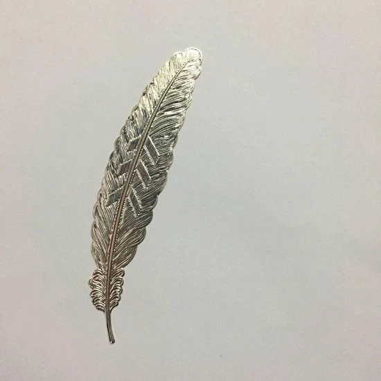 Een prachtige boekenlegger in de vorm van een veertje, gemaakt van bronskleurig metaal. De bladwijzer is zeer gedetailleerd gemaakt en mooi afgewerkt. De lengte van de veer is ongeveer 11 cm.