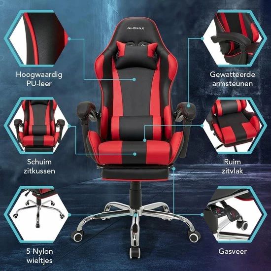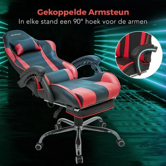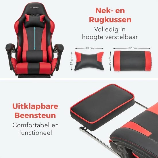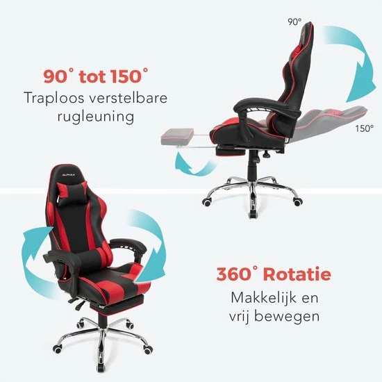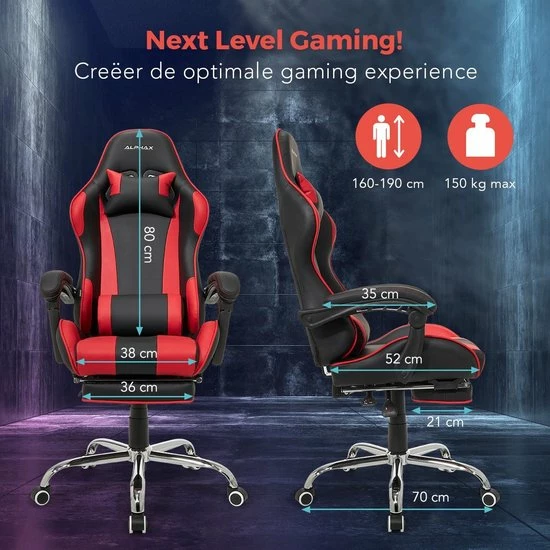 Ben jij een hardcore gamer? Beleef games nog intenser met de AlphaX gaming stoel van LifeGoods! Tijd voor ontspanning? Gebruik de uitklapbare voetensteun en gooi de voetjes van de vloer! Deze luxe gaming stoel heeft een verstelbaar nek- en rugkussen en een traploos kantelbare rugleuning (90-150Β°). Het zachte kunstleer voelt heerlijk aan en is ontzettend duurzaam! De zithoogte is verstelbaar van 40-50 cm van de vloer. Deze gaming chair is ideaal voor volwassenen / kinderen van 160-190 cm (max. 150kg). Kies je favoriete kleur, zet de stoel in een kwartiertje in elkaar en game voortaan in stijl!