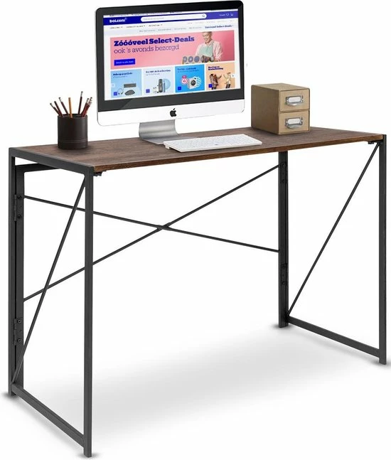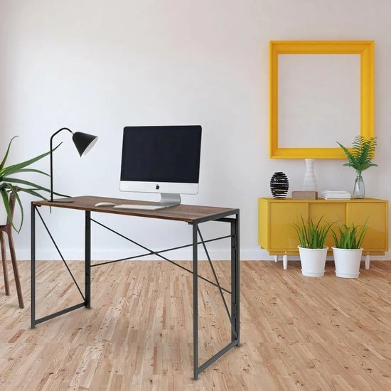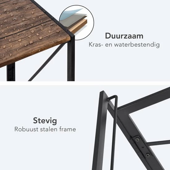 Een stevig en robuust stalen frame ondersteunt het houten tafelblad. Het zwarte frame ziet er zeer fraai uit naast het donkerbruine hout. Het frame is ook ontzettend stevig. Het bureau heeft door het frame een draagkracht van wel 80 kg! Het tafelblad zelf is strak afgewerkt met een waterproof en krasbestendige bovenlaag. Je hoeft je dus geen zorgen te maken dat de tafel over de jaren heen vergaat. De tafel kan tegen een stootje en heeft een lange levensduur.