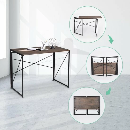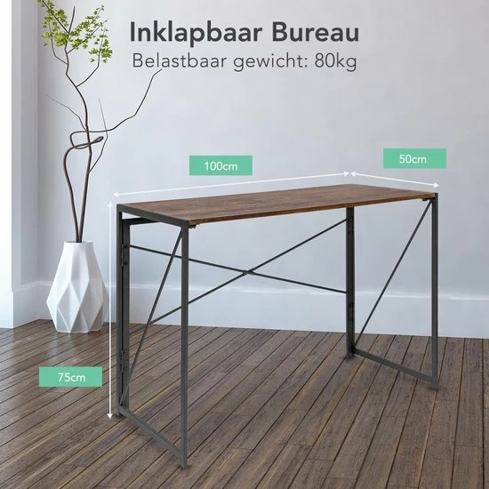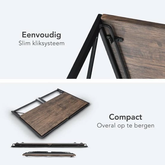 Het inklapbare bureau van LifeGoods is perfect voor elke ruimte in huis. Het bureau is eenvoudig in te klappen en gemakkelijk op te bergen. Je schuift hem simpelweg onder de bank of achter de kast! Je haalt het bureau pas weer tevoorschijn als jij hem nodig hebt. De industriële en vintage look van het tafelblad is een mooie toevoeging aan de rest van jouw interieur. Het tafelblad wordt ondersteund door een stevig en robuust metalen frame. Door dit metalen frame heeft het bureau een draagkracht van wel 80 kg. Daarnaast is de tafel waterproof en krasbestendig. Het bureau kan dus tegen een stootje en heeft een lange levensduur. Geniet nu van alle voordelen van het inklapbare bureau van LifeGoods. Plaats hem in een handomdraai bij jou in de werkkamer!