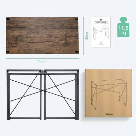 Het inklapbare bureau van LifeGoods is zo ontworpen dat deze geschikt is voor elke ruimte. Het bureau is bij uitstek geschikt als werktafel. Er is met het formaat van 100 cm bij 50 cm meer dan genoeg ruimte is voor een laptop, een desktop computer of boeken en schriften. Met de industriële en vintage look is de tafel daarnaast ook een mooie toevoeging aan andere ruimtes. Denk bijvoorbeeld aan een bijzettafel in de woonkamer, een tafel voor potjes en pannetjes in de keuken, een picknicktafel op zomerse dagen of zelfs een speeltafel voor in de kinderkamer.