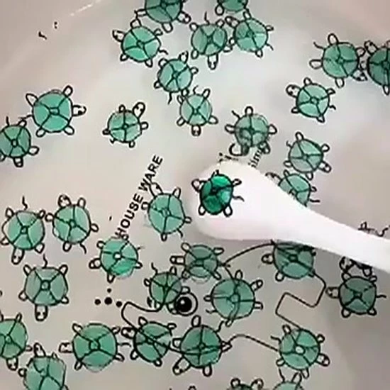 3. Nadat je het wateroppervlak hebt aangeraakt en de tekening het water raakt zul je zien dat de tekening loslaat van de lepel en op het oppervlak blijft drijven.