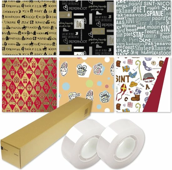 Verpak uw cadeaus voor pakjesavond stijlvol in mooi cadeaupapier. De trendy designs geven uw cadeau al voor het uitpakken een heel bijzonder en persoonlijke Touch van de Sint en zijn Pieten.