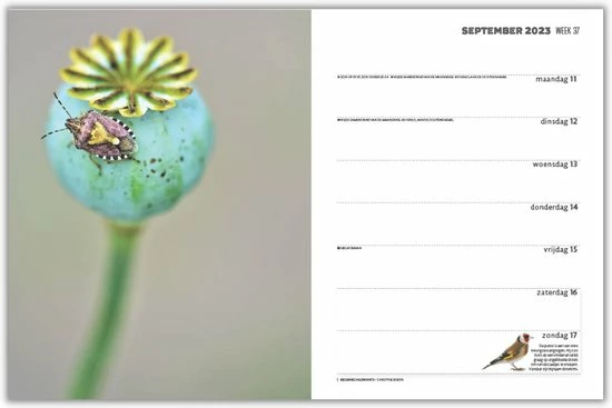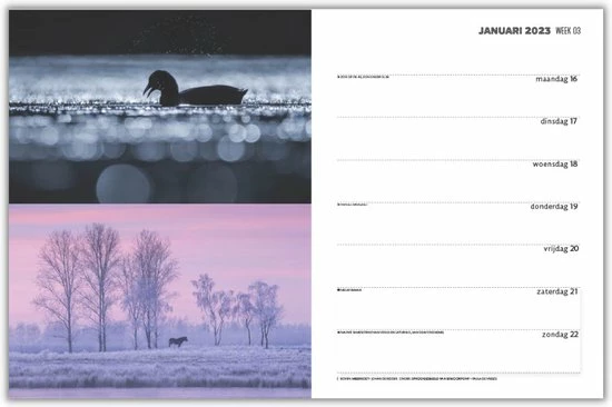 Behalve dat de Roots Natuuragenda 2023 heel handig is β met voldoende schrijfruimte, ook voor notities – staat-ie weer bomvol prachtige natuurfotoβs die zijn gemaakt door lezers van Roots. Inclusief 6 fotokaarten om familie of vrienden mee te verrassen. En met behulp van de zilverkleurige ringband leg je de agenda makkelijk open.