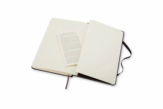 Deze betrouwbare reisgenoot is perfect voor journalen en al je gedachtes en notities. Het heeft een gebonden omslag met afgeronde hoeken, zuurvrij papier, een bladwijzer, een elastische sluiting en een uitzetbare binnenzak die de geschiedenis van Moleskine bevat.