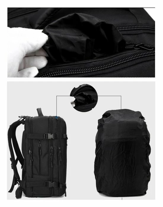 Naast dat je al jouw spullen netjes georganiseerd kwijt kan in een Omnistow rugzak biedt deze handige backpack nog een paar extra’s. Denk aan een bijgeleverde regenhoes zodat jouw spullen gegarandeerd nooit meer nat worden. Een handige externe USB-aansluiting, die je aan de binnenzijde van de rugzak kan aansluiten met je powerbank, zodat jouw mobiele telefoon, tablet of andere elektronische apparaten nooit meer zonder stroom zitten.