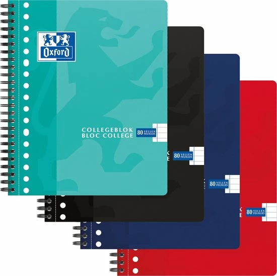 Let op: je ontvangt 1 collegeblok in een willekeurige kleur! Turquoise, zwart, rood of blauw.