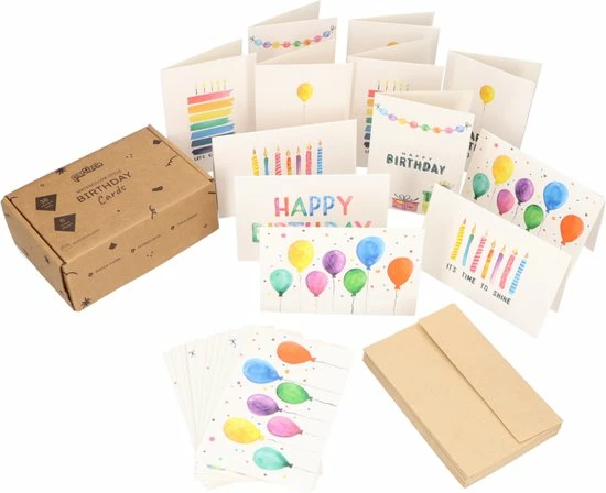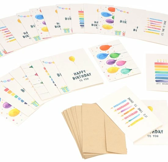 Met de Partizzle® verjaardagskaarten set zorg je ervoor dat je altijd kaarten met envelop bij de hand hebt.