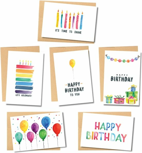 Verras je vrienden of vriendinnen en familie met de leukste aquarel verjaardagskaarten set!