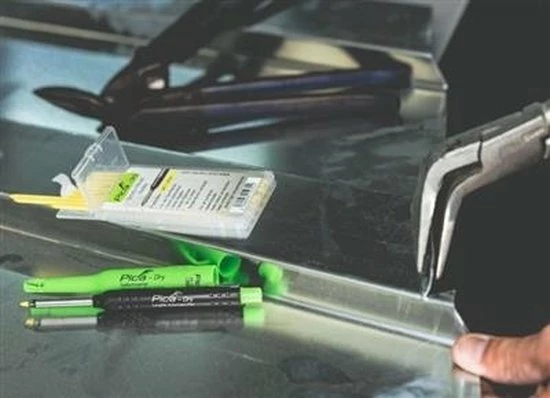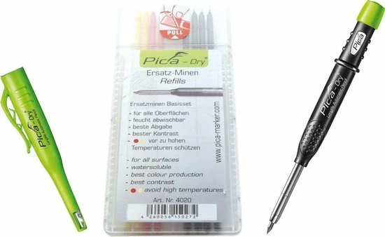 - De universele, grafiete vulling maakt markeren mogelijk op bijna alle ondergronden: nat, droog, glad, stroef, stoffig of bedekt met olie.