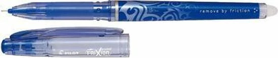 De Frixion Ball is de uitgumbare pen. Zonder gum, zonder wisser, zonder beschadigingen aan het papier, kan tekst makkelijk worden verwijderd. Het is mogelijk omdat de inkt van de Frixion ball op warmte reageert. Door wrijving met het kunststof uiteinde van de inktroller ontstaat warmte waardoor de inkt onzichtbaar wordt. Herschrijf de tekst en klaar. Kou (-15 graden) zorgt voor het tegenovergestelde effect. Leg de gewiste tekst in het vriesvak en na korte tijd wordt de tekst weer zichtbaar. De pen schrijft heerlijk en geeft uitstekend zijn inkt af.