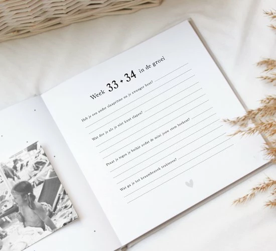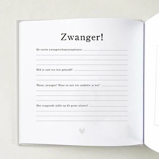 Ook is er in het zwangerschapsdagboek genoeg plek voor buikfotoโs, eigen verhalen, fotoโs, kaartjes, echoโs en ga zo maar door. Niet alleen leuk om tijdens deze bijzondere maanden in te vullen, maar ook voor later!
