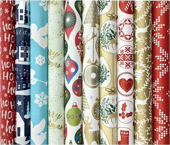 7 rollen kerstpapier, inpakpapier voor de pakjes onder de boom.