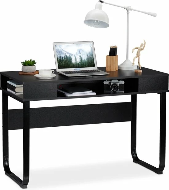 Met de compacte laptoptafel creรซer je een mooie werkplek. In de 3 open vakken berg je dunne boeken als ook schrijf en kantoorartikelen grijpbaar op. Het grote tafelblad biedt genoeg ruimte voor het werken aan een laptop of computer, en ook voor een printer is er genoeg ruimte. Of nu thuis in de woon- of kinderkamer of op kantoor – Jongeren en volwassen hebben met de computertafel een perfecte werkplek in modern design. Onder het bureau is bovendien genoeg ruimte, bijvoorbeeld voor een ladeblok.