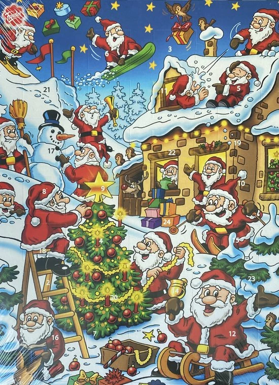 | Verpakkingsinhoud | 1, chocolade, advent, kalender, met, kerstmannen, van, 65, gram |