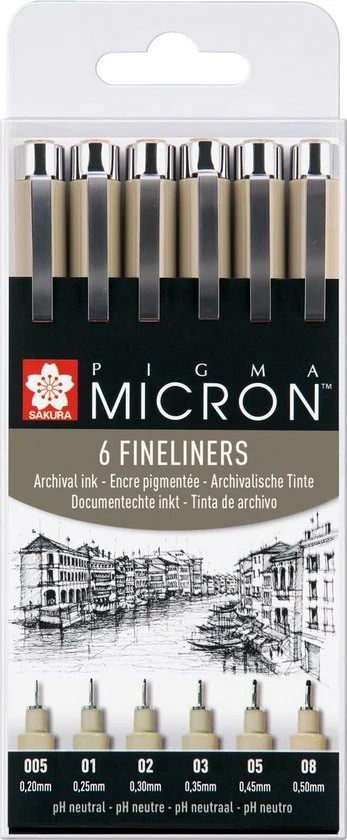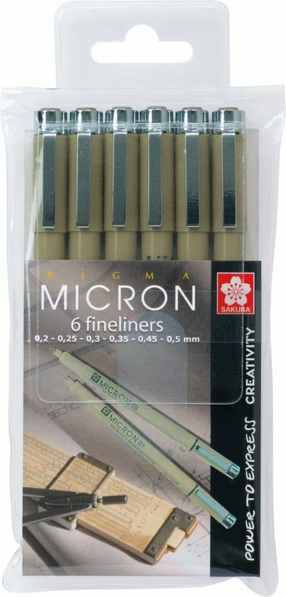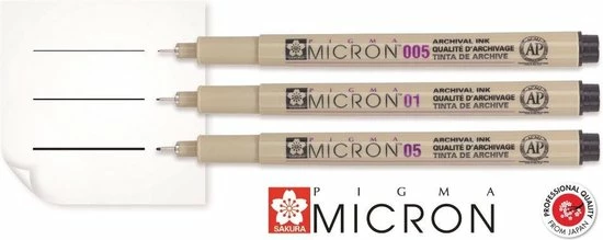 Deze fineliners bevatten de zwartste inkt ter wereld die jarenlang net zo zwart blijft als de dag waarop je de inkt aangebracht hebt. Er zijn totaal 8 puntdiktes van 0,15mm tot 0,50mm (telkens met stappen van 0,05mm).