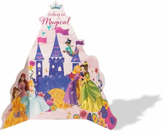 Met deze prachtige Disney Princess adventskalender nemen de prinsessen Assepoester, Ariel, Tiana, Jasmine en Belle uw kind mee op avontuur in de magische wereld van het prinsessen bestaan. Zo laat u uw prinses een kijkje nemen in het leven van haar favoriete filmpersonages. U kunt namelijk met de adventskalender uw kind elke dag vanaf 1 december tot en met de Kerst verrassen met leuke cadeautjes. Elke dag zorgt voor een bijzonder ontdekmoment. Door de speelse lay-out van de kalender kan de kalender perfect tentoongesteld worden onder de boom.