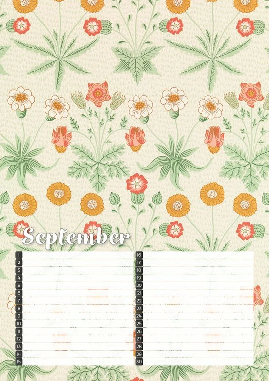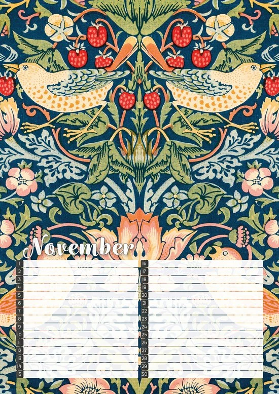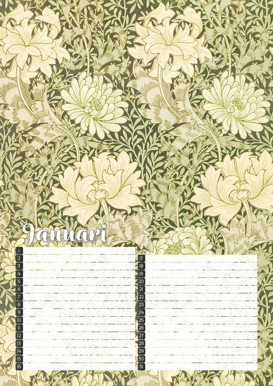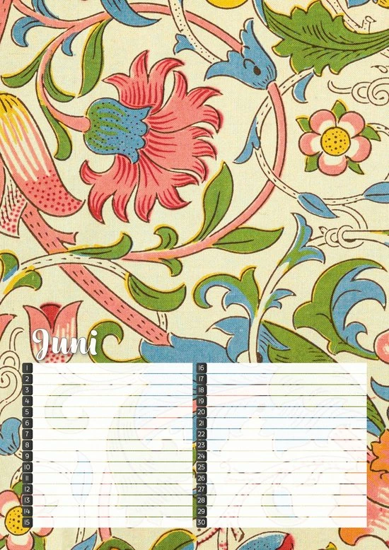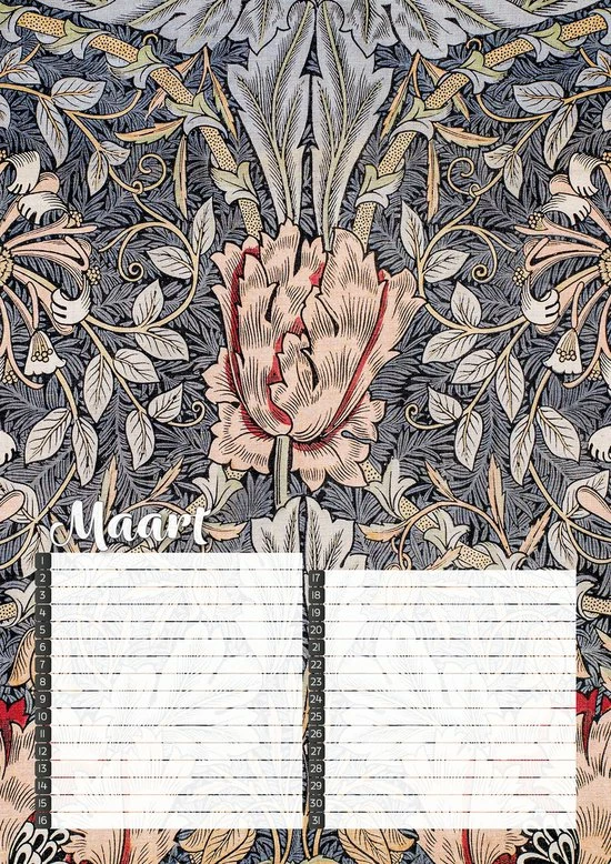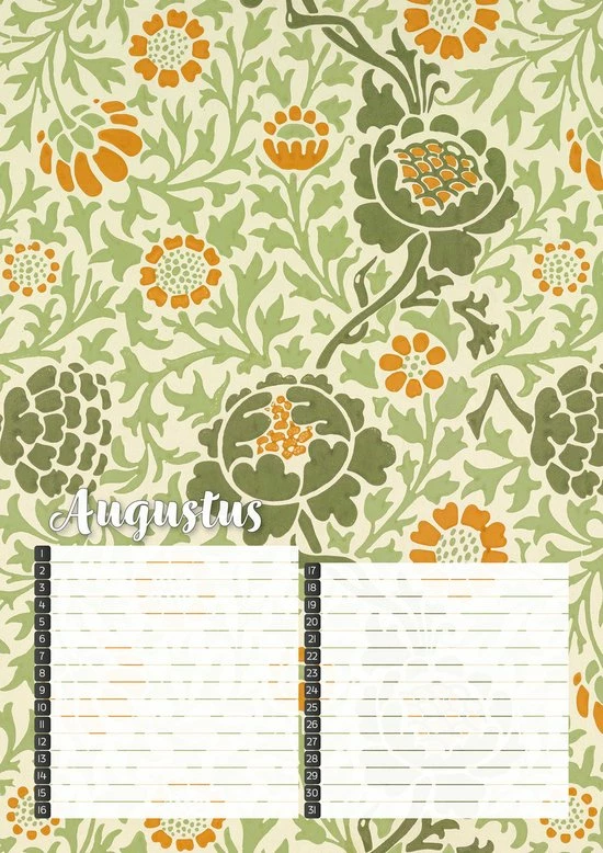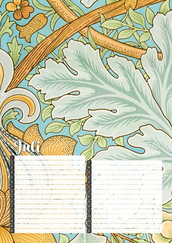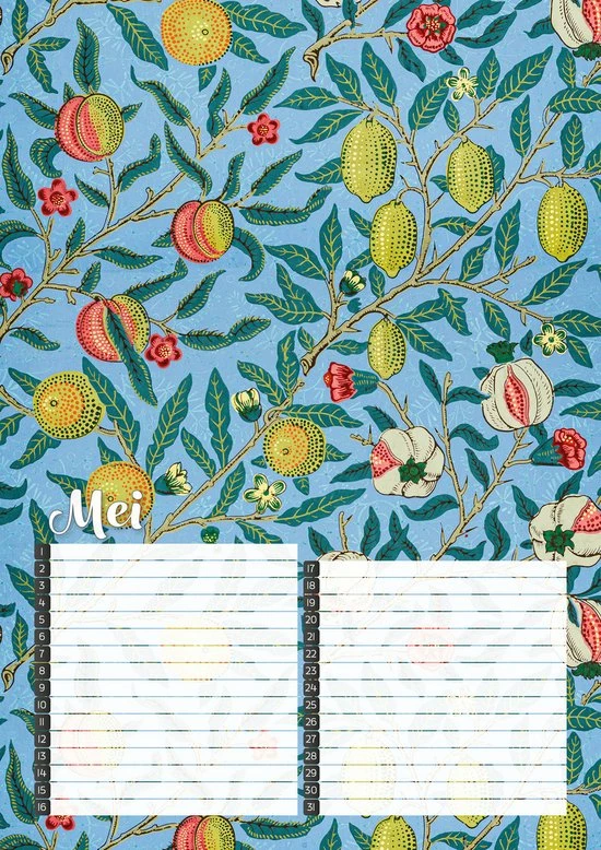 Vergeet geen verjaardag meer met deze fraai vormgegeven verjaardagskalender met kleurrijke botanische prints van de Britse ontwerper William Morris.