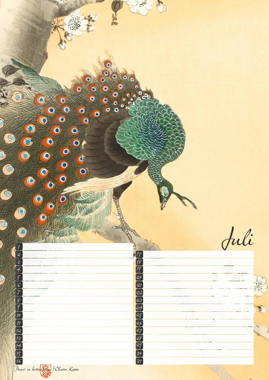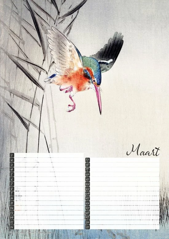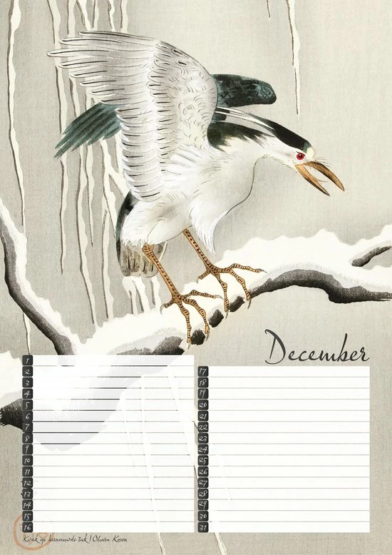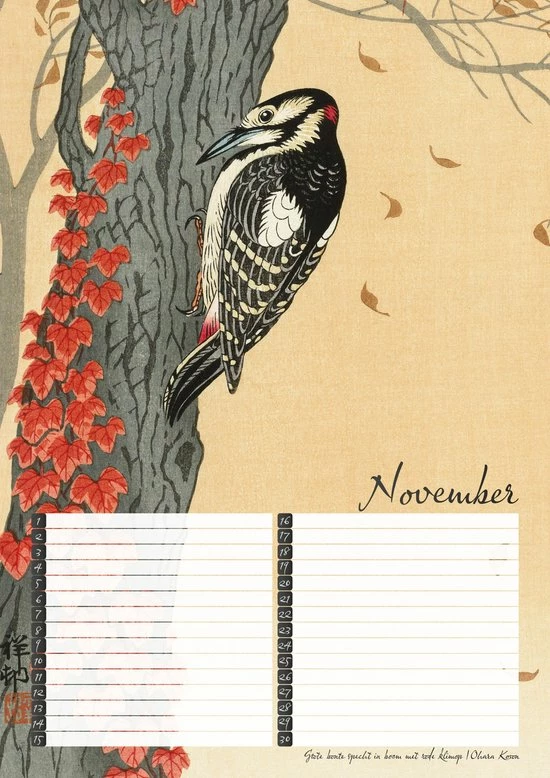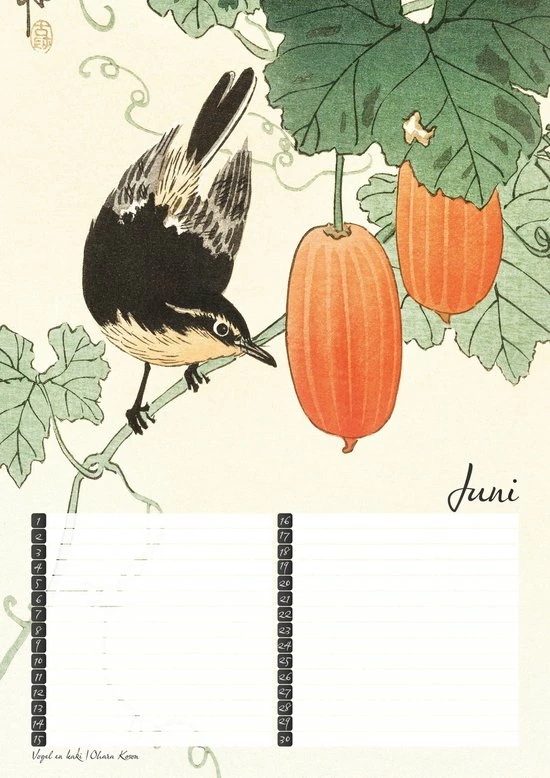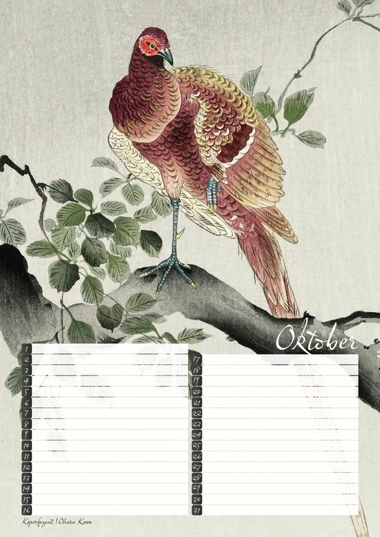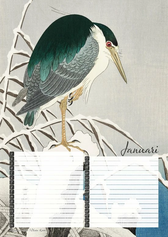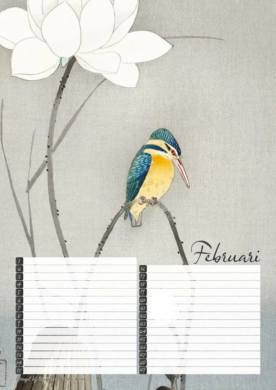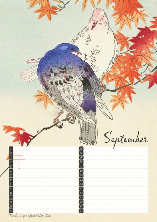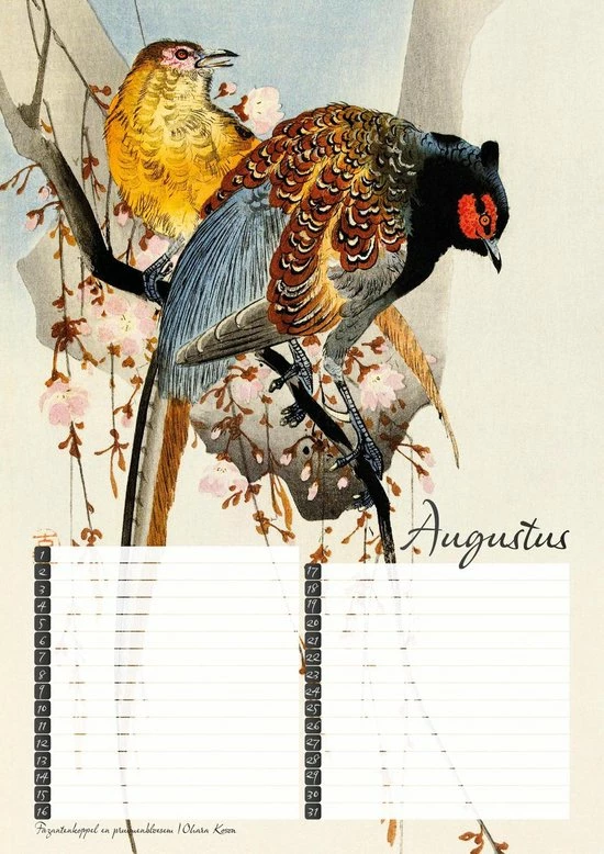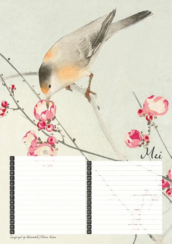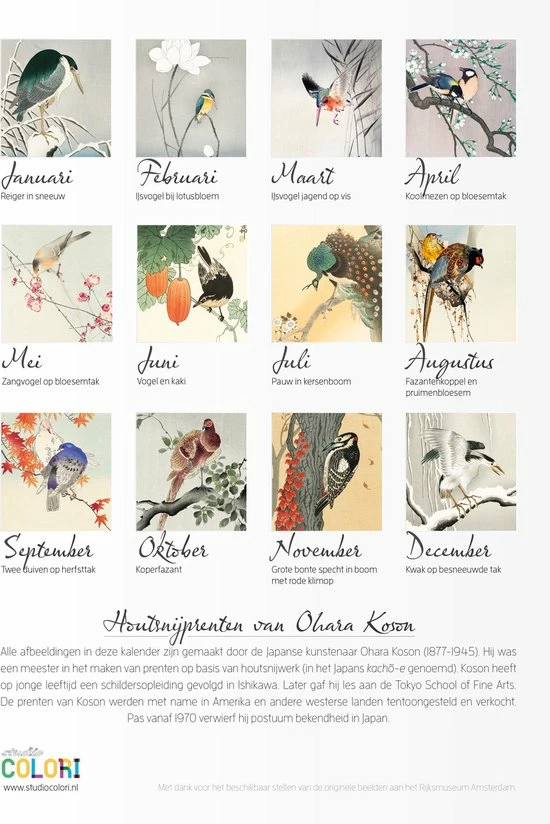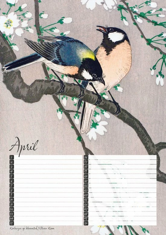 Vergeet geen verjaardag meer met deze fraai vormgegeven verjaardagskalender met kleurrijke vogelprenten van de Japanse meester Ohara Koson.