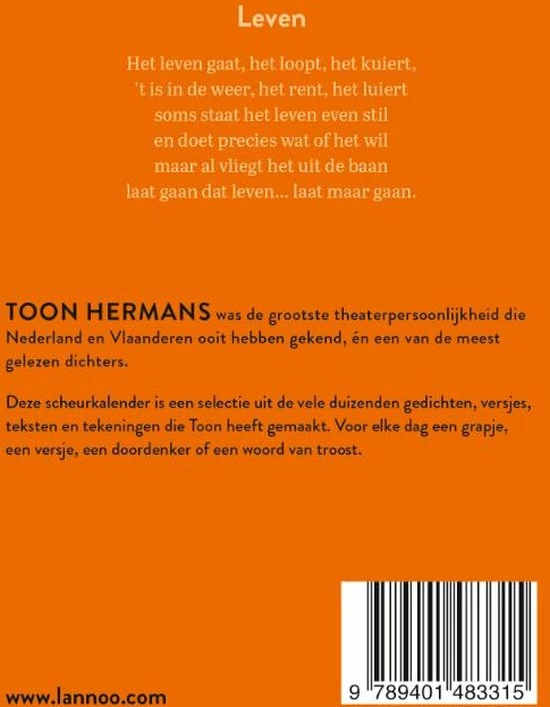 Artikelnummer: 9300000067078669 CategorieΓ«n: Kalenders, Kantoor & School, Scheurkalenders Tags: Scheurkalenders, Toon Hermans