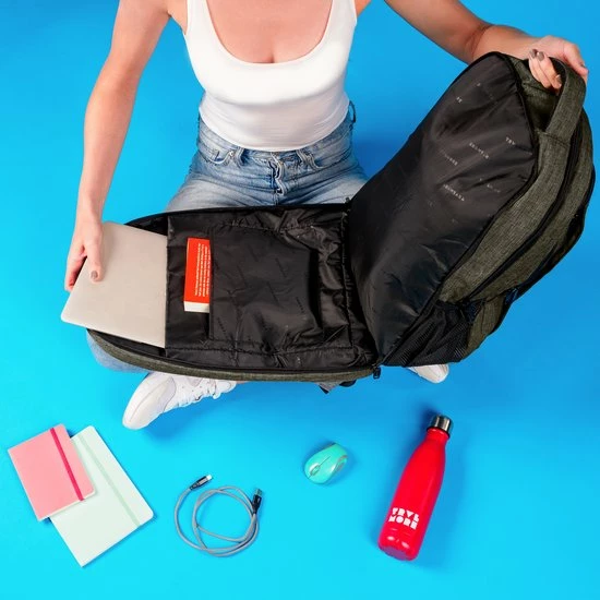 Het laptopvak kan zo ver opengeritst worden dat de tas 180 graden plat ligt met het laptop- en tabletvak open zichtbaar. De tas kan dan volledig opengeklapt op de band gelegd worden. Zo vermijd je het stressvolle in- en uitpakken van je bagage. Voortaan ben je zo door de douane heen!