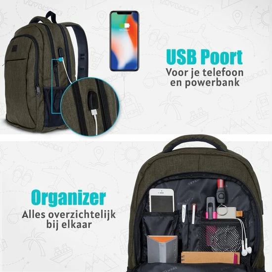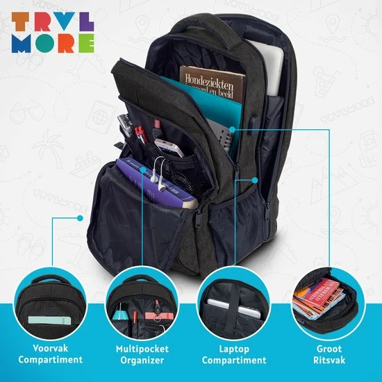 Zoek je een rugzak waar je 17,3โ laptop in past, die lekker zit en extra veel ruimte heeft? Dan is de TRVLMORE Rugzak XL (36L) voor jou! Met een spatwaterdichte coating, USB-poort, stevige vergrendelbare ritsen, en een 17,3โ laptopvak heeft deze tas alle features die je maar nodig kan hebben. De gewatteerde schouderbanden zorgen voor optimaal comfort. Tevens is de tas douane-vriendelijk. Deze stijlvolle en minimalistische 36 liter rugzak met verschillende opbergvakjes is ideaal voor dagelijks gebruik en voor op reis!