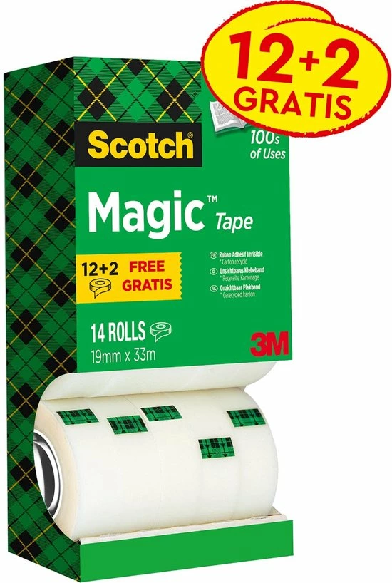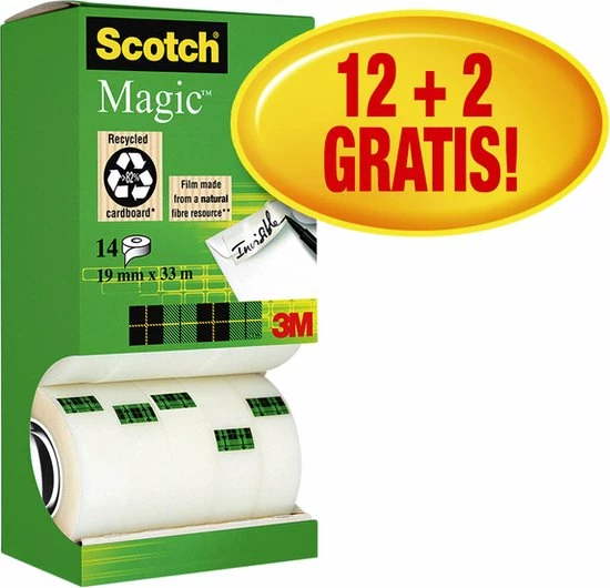 Beste deal ๐งจ Value Pack: 12 X Scotch® Magic™ Tape, Kartonnen Toren, 19 Mm X 33 M + 2 Rol GRATIS ๐