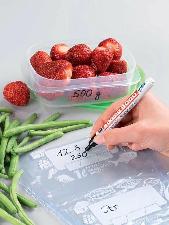 Speciaal geschikt voor het beschrijven, merken en markeren van diepvrieszakken en diepvriesdozen.