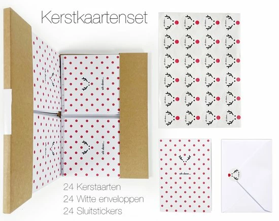 Set van 24 gevouwen kerstkaarten met illustratie van “Rudolph the Rednosed Reindeer”. De wenskaarten zijn gevouwen en bedrukt op 350 grams dik FSC-papier, inclusief 24 enveloppen & bijpassende sluitzegels die het geheel mooi afmaken. De set wordt geleverd in een kartonnen doosje.